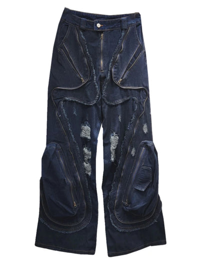 Vintage Zipper Pocket Denim Jeans