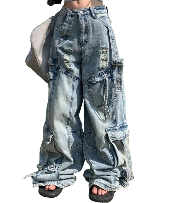 Printed Letter Buckle Multi Buckle Denim SKirt