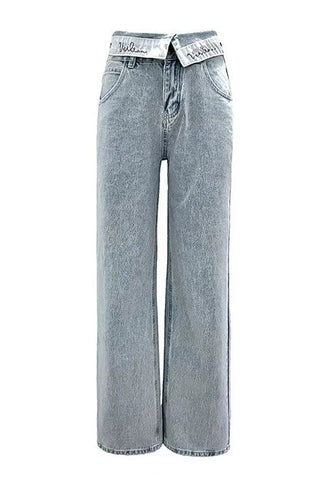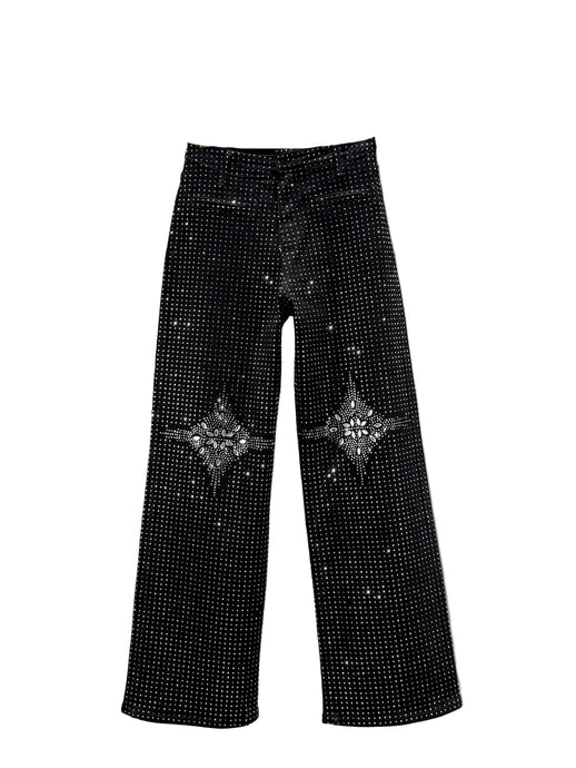 Crystal Hollow Out Wide-Leg Denim Jeans