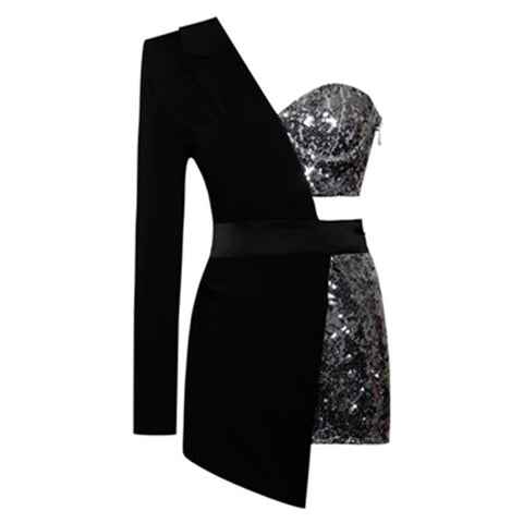 One-Shoulder Patch Sequin Set