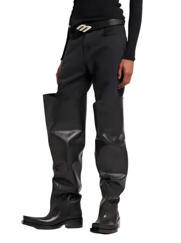 Patch Contrast Leather Pants