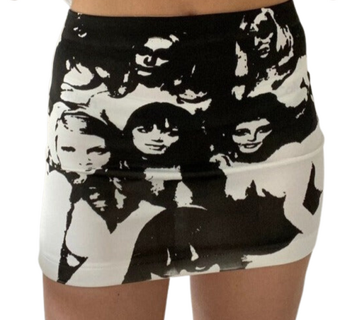 Printed Letter Buckle Multi Buckle Denim SKirt