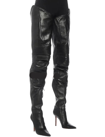 Patch Pointed-Toe Stiletto Lace-Up Boots