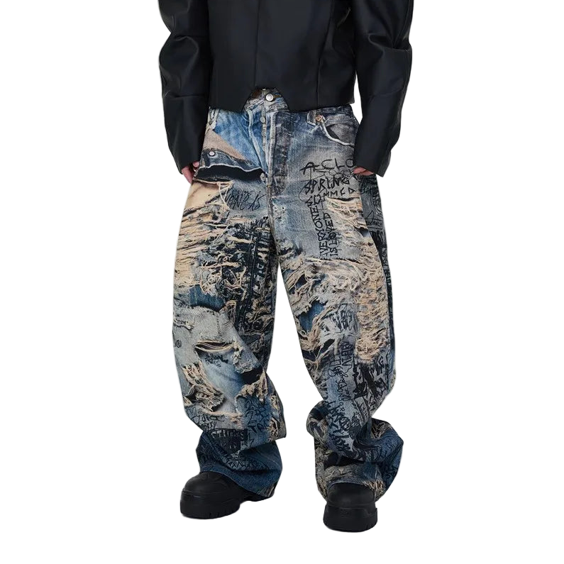 • Load image into Gallery viewer, 3D Printed Graffiti Ripped Denim Jeans
