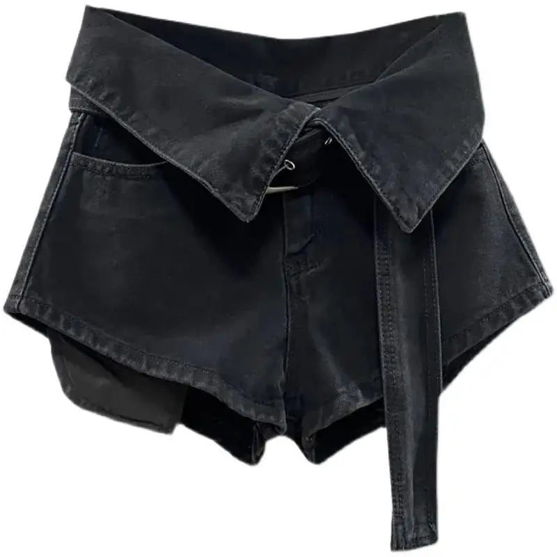 Black Folded Denim Shorts