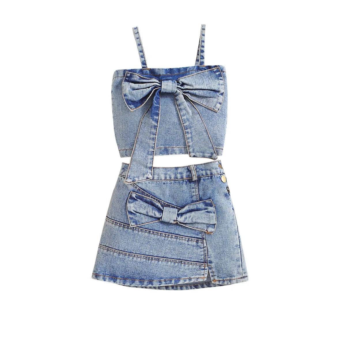 • Load image into Gallery viewer, Bow Pcth Denim Skirt Set