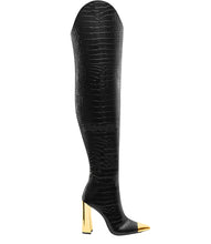 Croc Print Gold Heel Leather Boots-Modern Baby Las Vegas