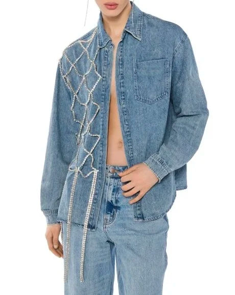 • Load image into Gallery viewer, Crystal web Patch Denim Top