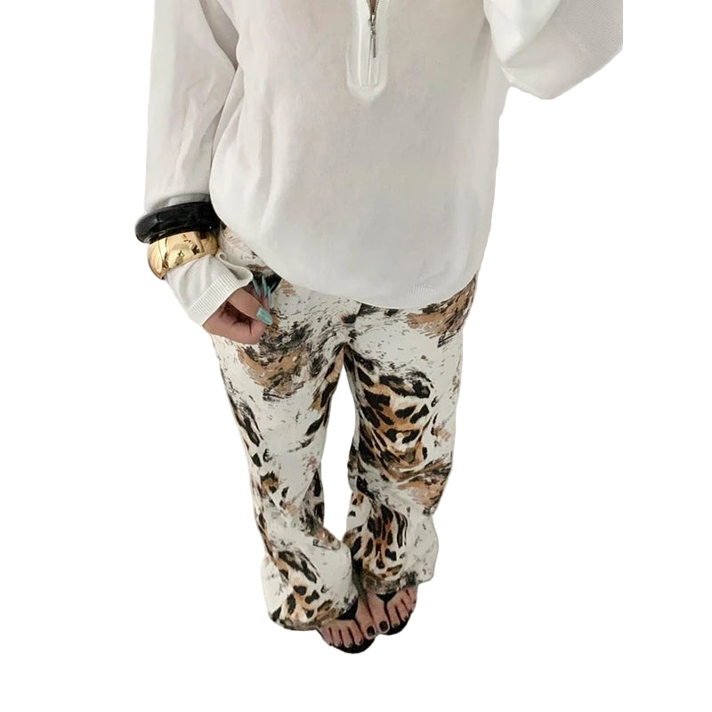 Leopard Print Wide Leg Jeans