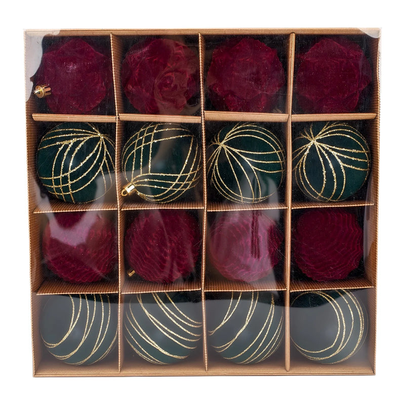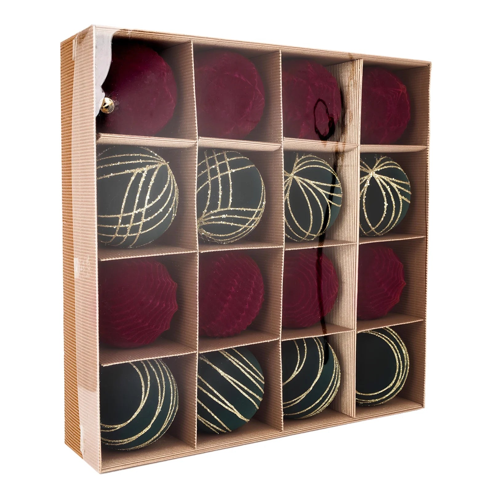 • Load image into Gallery viewer, Red and Green Flocked Christmas Tree Ornaments