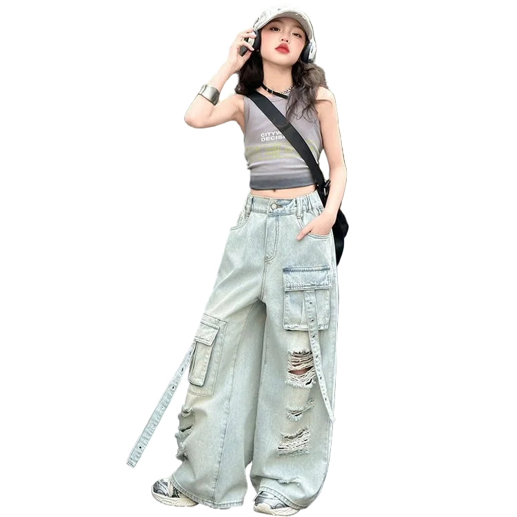 • Load image into Gallery viewer, Ripped Pocket Cargo Denim Jeans Set