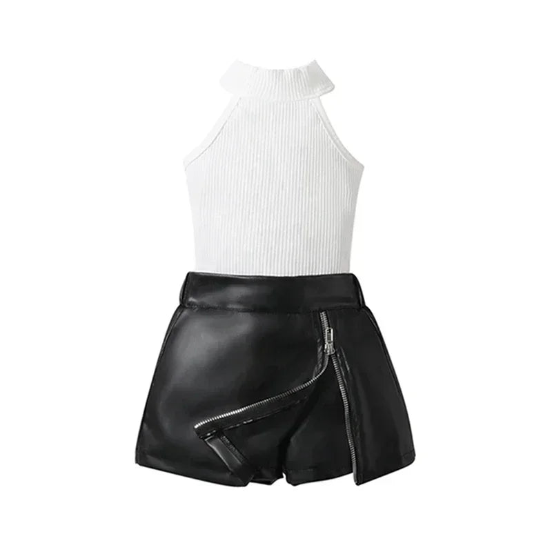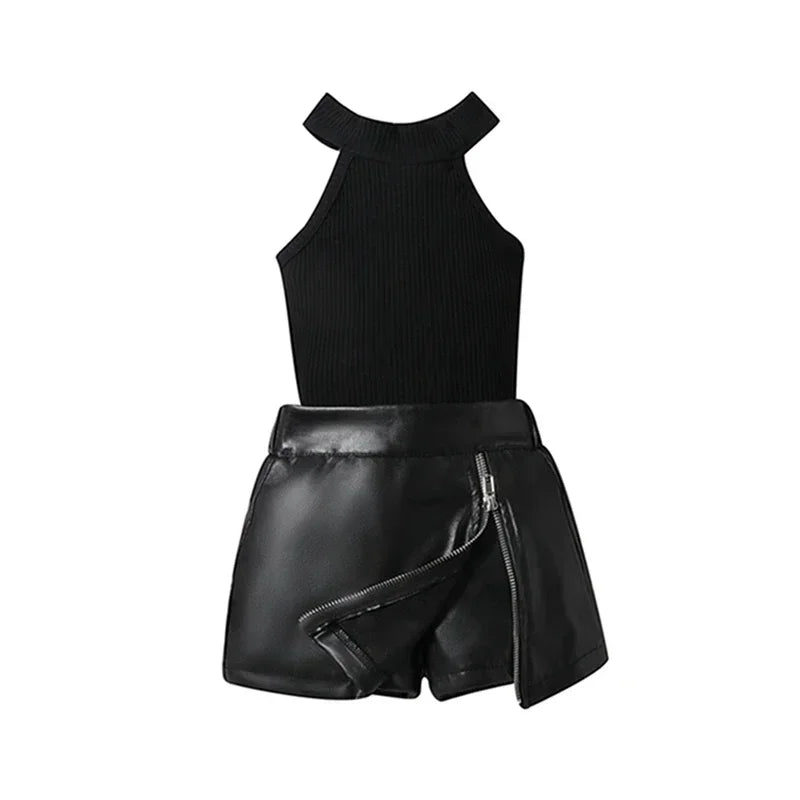 • Load image into Gallery viewer, Zipper Leather Skirt Set