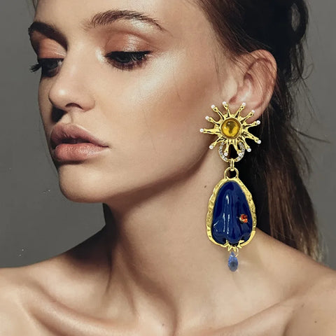 Metal Golden Plated Ear Shaped Dangle Earrings