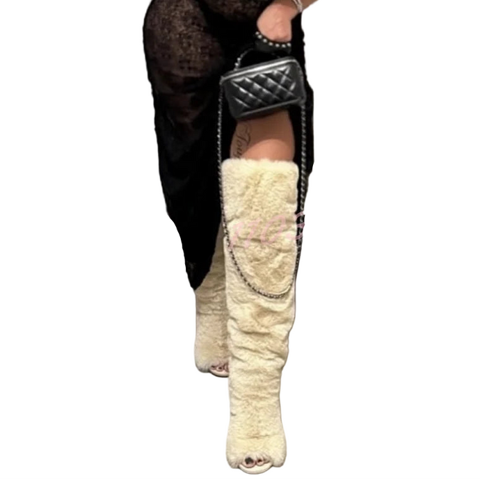 • Open-Toe Fur Boots