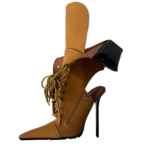 Patch Pointed-Toe Stiletto Lace-Up Boots-Modern Baby Las Vegas