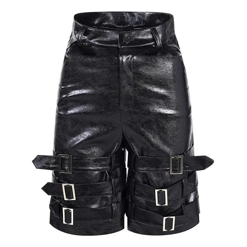 Black Buckle Leather Shorts