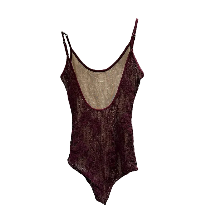 Burgundy Lace Bodysuit And Shorts Set