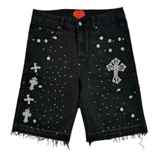 • Load image into Gallery viewer, Crystal Cross Denim Shorts-Modern Baby Las Vegas