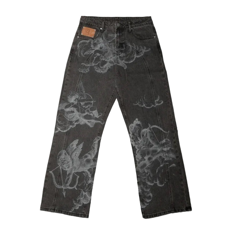 Grey Cupid Print Denim Jeans