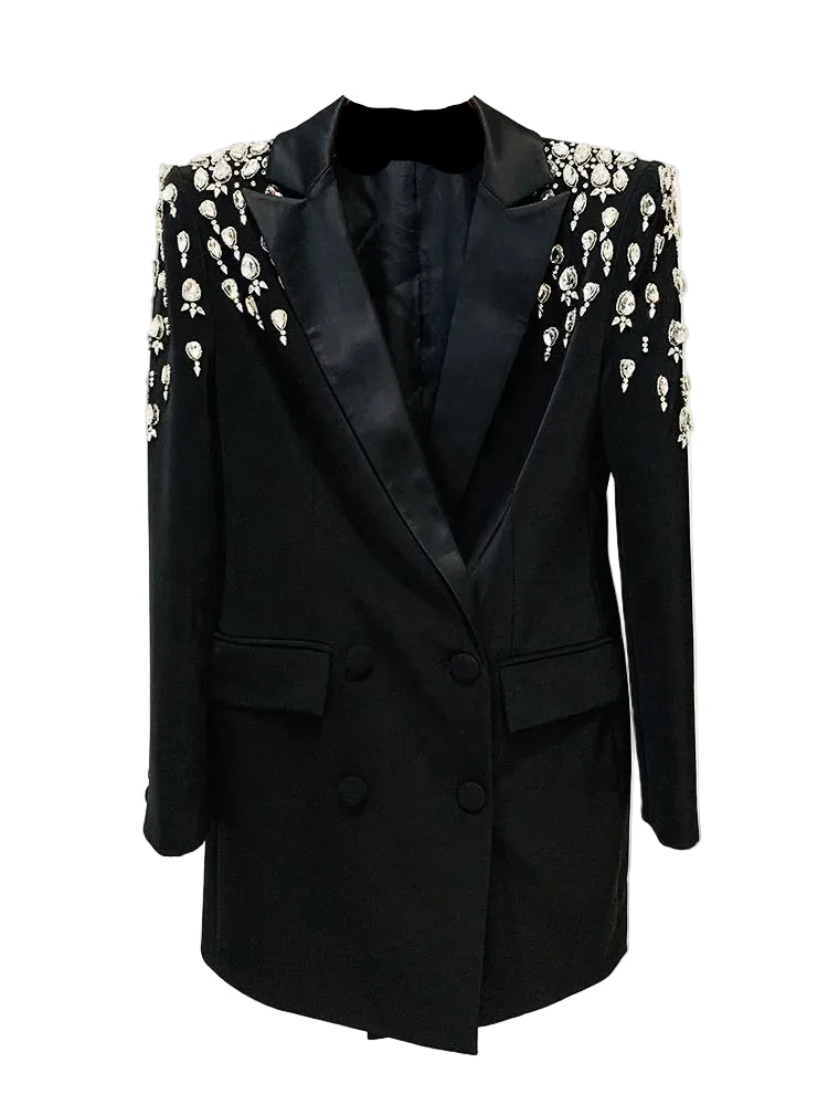 Handmade Crystal Shoulder Blazer Jacket