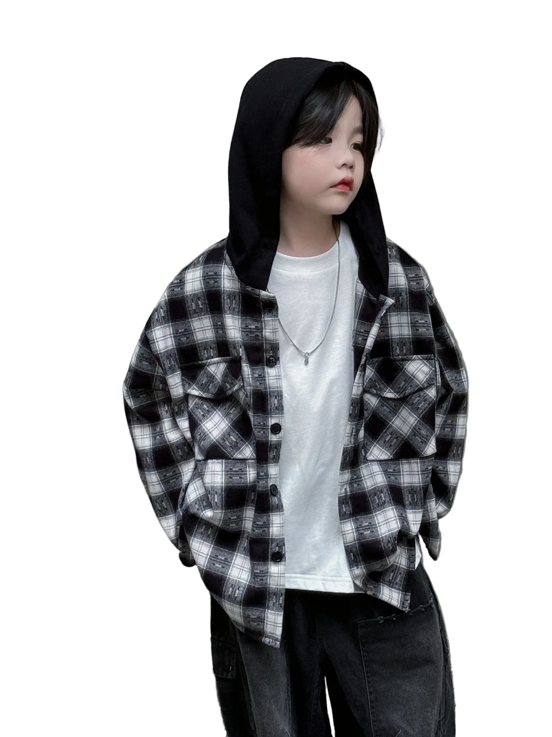 • Load image into Gallery viewer, Hooded Plaid Jacket Top
