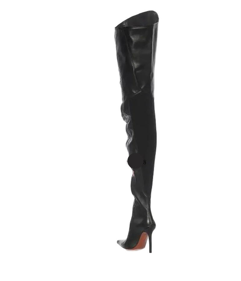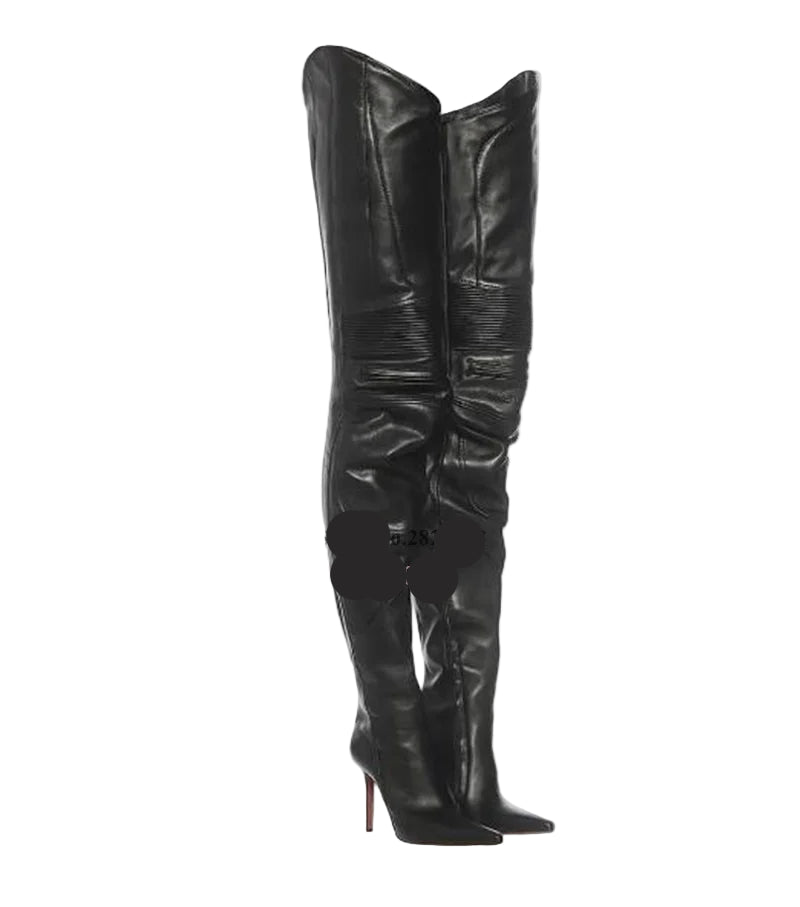 Leather Thigh-High Motorcycle Boots