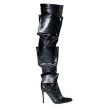 • Load image into Gallery viewer, Multi-Pocket Croc Print Knee Boots-Modern Baby Las Vegas