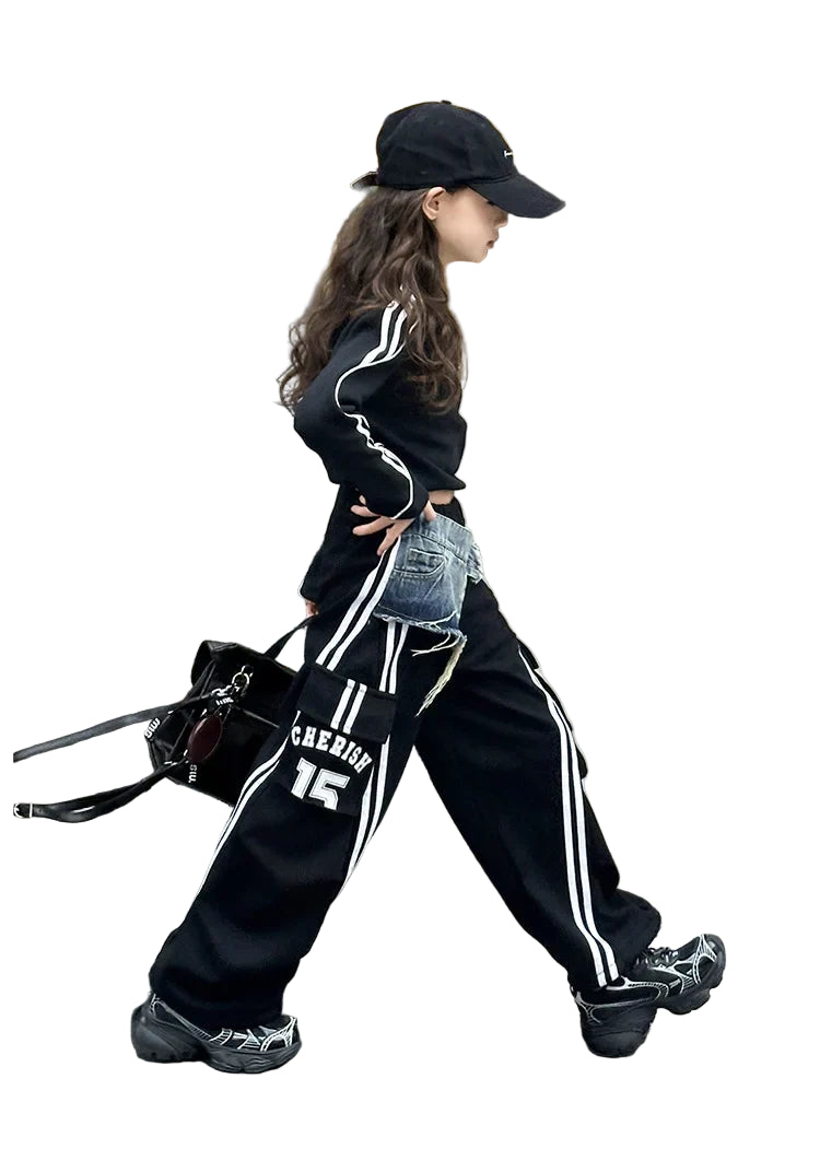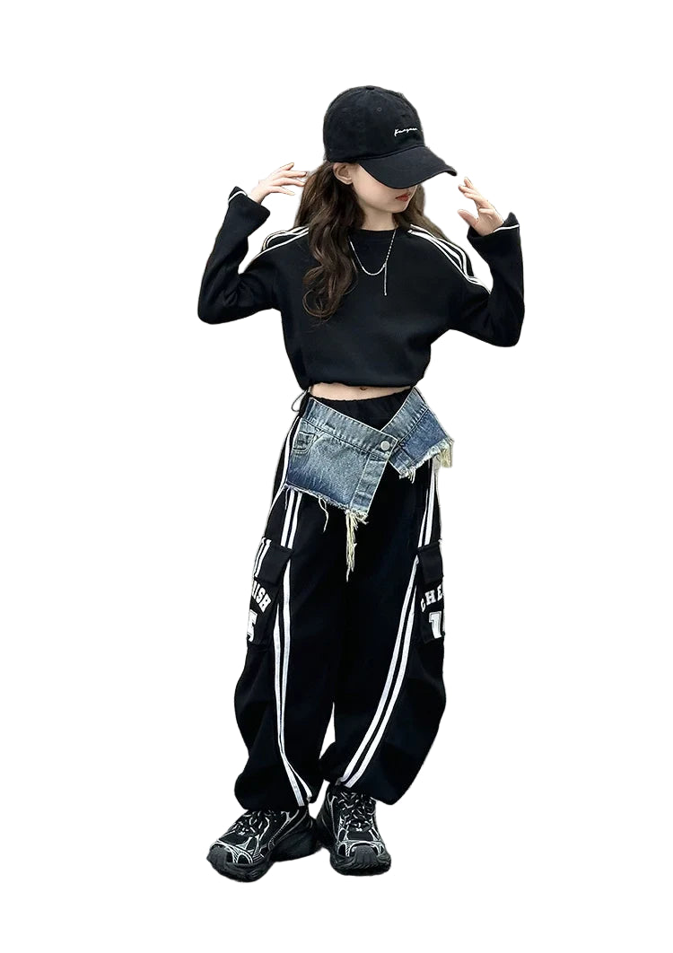 • Load image into Gallery viewer, Striped Patch Denim Track Pants Set