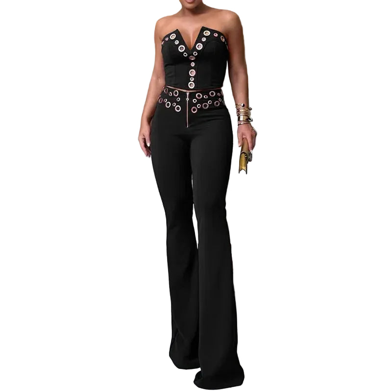 • Load image into Gallery viewer, V Metal Circle Tank Pants Set