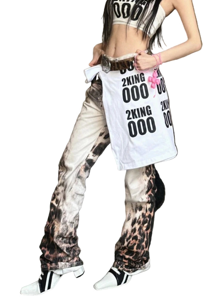 3D Print Faded Leopard Denim Jeans