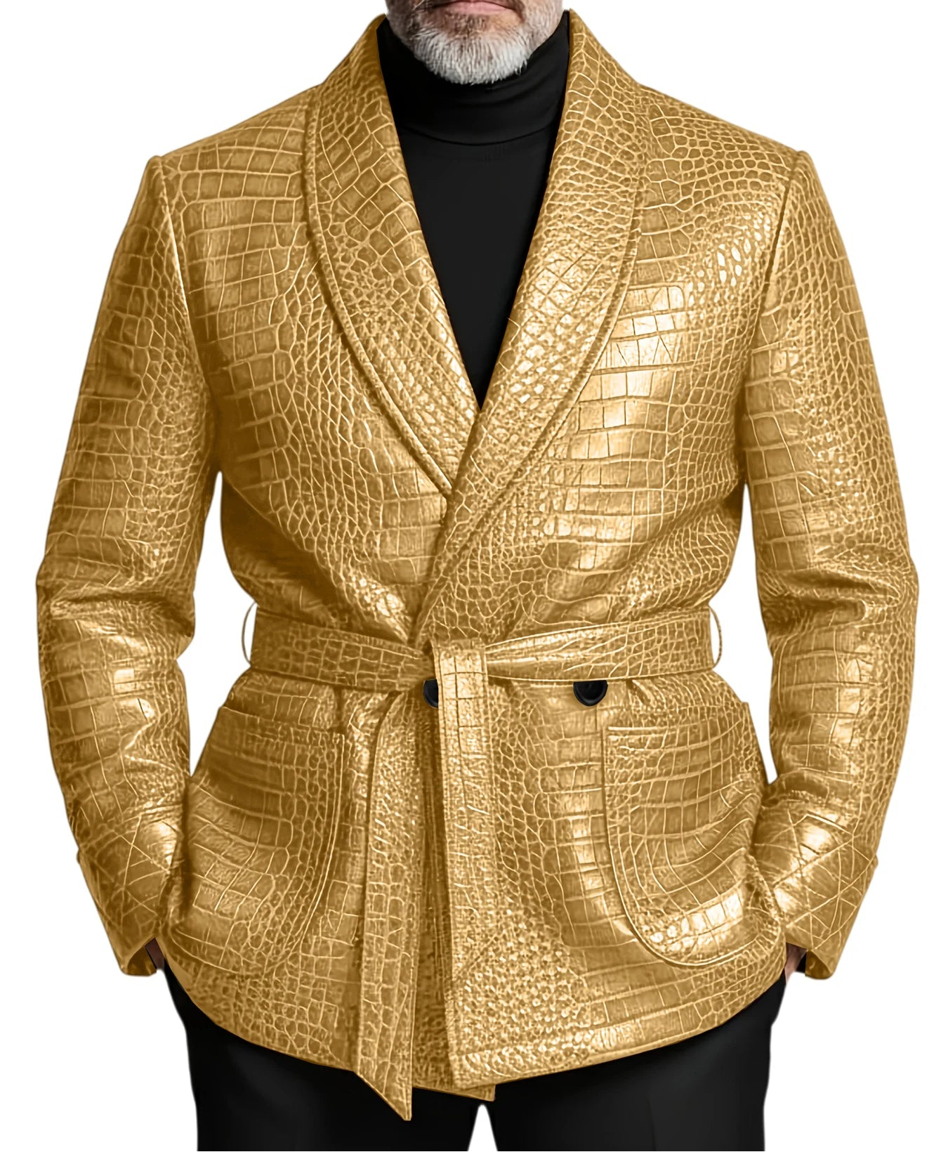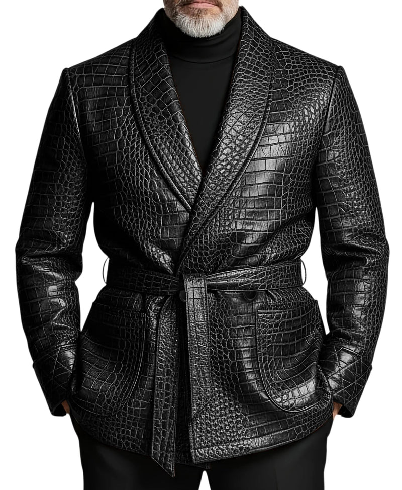 Belted Croc Leather Jacket