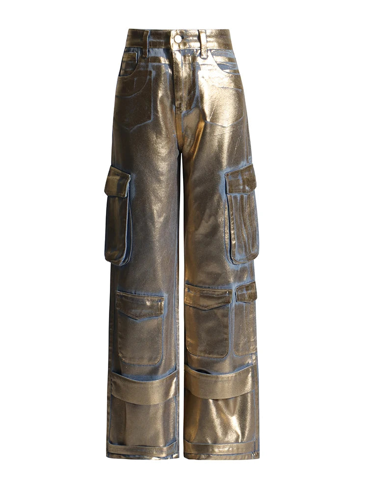 Gold Metallic Multi-Pocket Pants