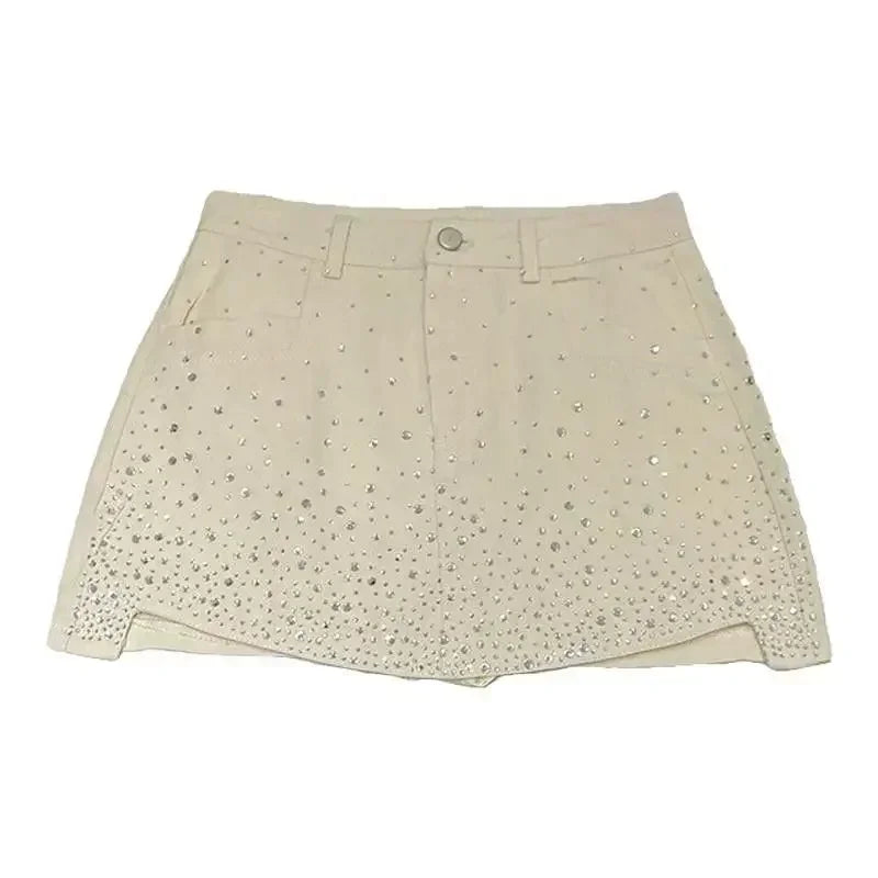 Irregular Speckled Crystal Denim Skirt