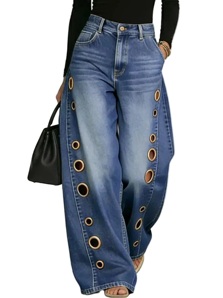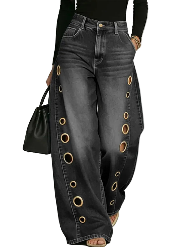 • Load image into Gallery viewer, Side Metal Hole Denim Jeans