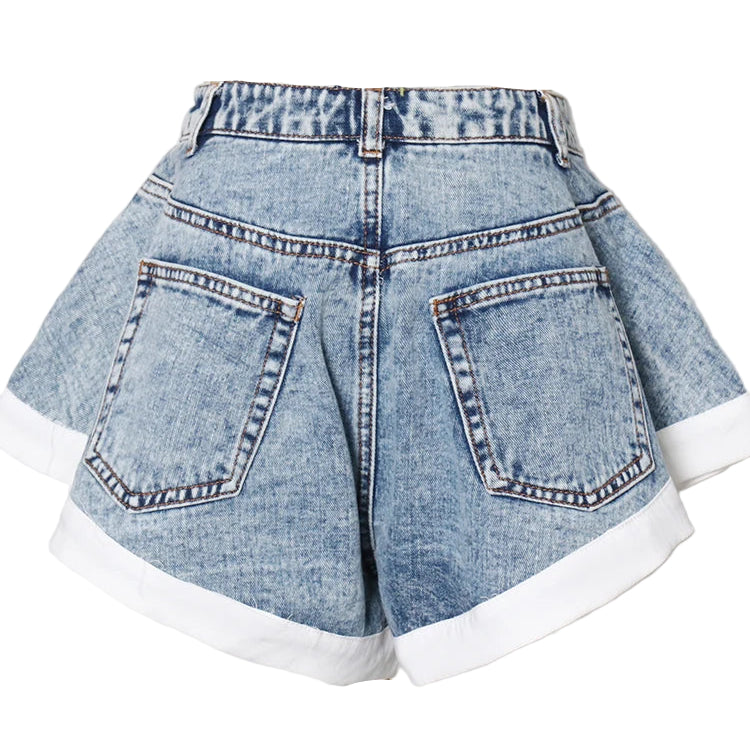 White Trimmed Flutter Denim Shorts